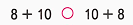 Так как 18 = 18, то 8 + 10 = 10 + 8;