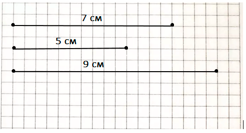 3) 9 - 7 = на 2 (см) – 3 отрезок длиннее 1-го отрезка.