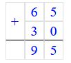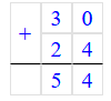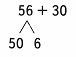 56 + 30 = 50 + 6 + 30 = (50 + 30) + 6 = 86;