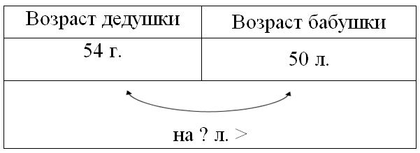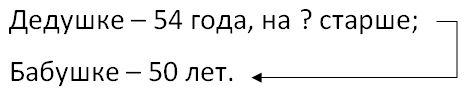 Краткое условие: Дедушке 54 года, а бабушке 50 лет. На сколько лет дедушка старше бабушки?