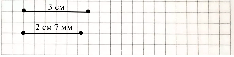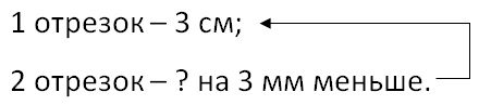 Краткое условие: Начерти два отрезка: длина первого отрезка 3 см, а второго — на 3 мм меньше.