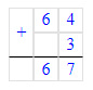 64 + 3 = 67.