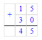 15 + 30 = 45;