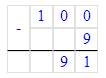 100 - 9 = (90 + 10) - 9 = 90 + (10 - 9) = 90 + 1 = 91.