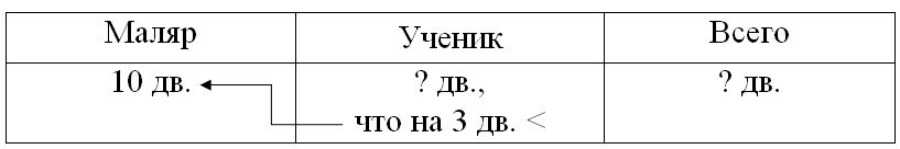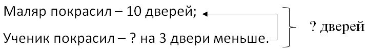 Краткое условие: Маляр покрасил за день 10 дверей, а его ученик — на 3 двери меньше. Сколько всего дверей они покрасили за день?