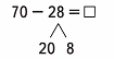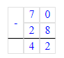 70 – 28 = 70 – 20 - 8 = 50 - 8 = 42;