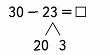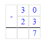 30 – 23 = 30 – 20 – 3 = 10 – 3 = 7;