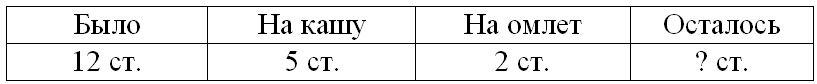 1) 12 - 5 = 7 ст. – осталось после приготовления каши