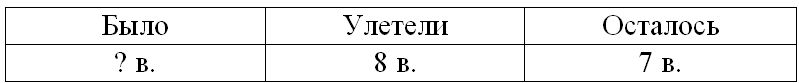 Задача: На дереве сидели вороны. После того, как улетело 8 ворон, на дереве осталось 7 ворон. Сколько ворон было?