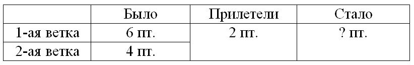 Шаг 2. Найдём сколько всего птиц стало на ветках: