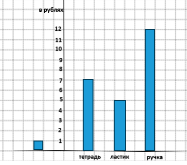 Краткое условие: Используя решение задачи, построй диаграмму стоимости этих предметов. (Обозначай 1 р. одной клеткой.)