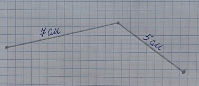 3) Начертим ломаную такой же длины, но состоящую из двух звеньев, длины которых выражены в сантиметрах: