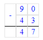 Так как 47 = 47, то 90 - 43 = 60 - 13;