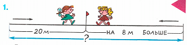 1) 20 + 8 = 28 м – прошла вторая девочка