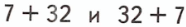 7 + 32 = 32 + 7, т.к. 39 = 39;