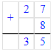 27 + 8 = 27 + 3 + 5 = 30 + 5 = 35;