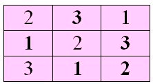Допустим сумма чисел по рядам, столбцам и диагоналям будет равна 6.