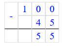 46 + 9 = 46 + 4 + 5 = 50 + 5 = 55;