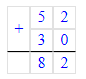 5. 52 + 30 = 82;