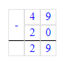 2. 49 - 20 = 29;