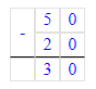 3. 50 - 20 = 30;