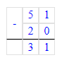4. 51 - 20 = 31;