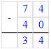 74 – 40 = 34;