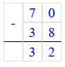 70 - 38 = 32;