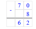 6) 70 – 8 = 62;