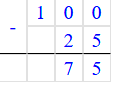 12) 100 – 25 = 75;