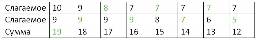 1. 10 + 9 = 19;