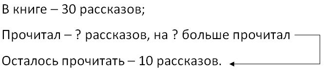 Краткое условие: В книге 30 небольших рассказов. После тою как Дима прочитал несколько рассказов, непрочитанными остались 10 рассказов. На сколько рассказов больше прочитал Дима, чем ему осталось прочитать?