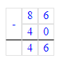 1) 84 + 2 – 40 = 86 – 40 = 46;