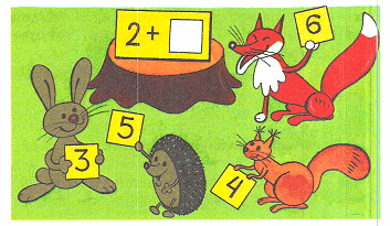 Краткое условие: Если подставить в окошко карточку, которою несёт ёжик, то получится выражение 2 + 5. Найдём значение этого числового выражения: Подставляй в окошко другие числа и вычисляй значения получаемых числовых выражений.