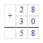28 + 30 = 58;