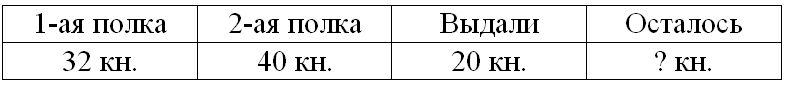 1) 32 – 20 = 12 кн. – осталось сначала