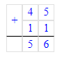 45 + 11 = 56;