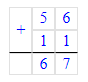 56 + 11 = 67;