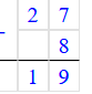 27 - 8 = 19;