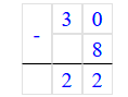 30 - 8 = 22;