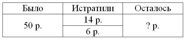 Истратила – 14 р. и 6 р.;