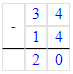 2. 34 – 14 = 20;