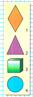 1. Лишней может быть третья фигура, так как она объёмная, а все остальные – плоские.