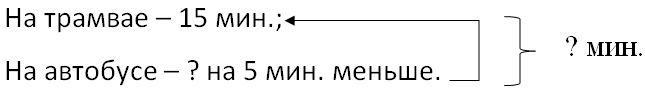 Мама едет на работу сначала на трамвае 15 мин, а потом на автобусе на 5 мин меньше, чем на трамвае. Сколько времени мама добирается на работу?