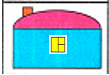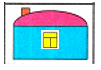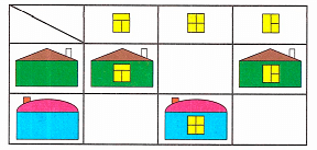 2. В первой свободной клетке второго ряда должен быть нарисован синий дом с окном на 3 деления с большим окном сверху: