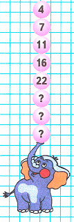 Так как 7 – 4 = 3, а 11 – 7 = 4, значит, значение каждого последующего числа ряда увеличивается постепенно на 3, 4, 5, 6, 7, 8, 9, 10 и т.д., увеличиваясь на 1 единицу.