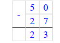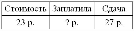 1) 50 – 23 = 27 р. – сдача