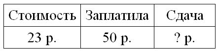 1. Лена дала продавцу 50 р. за книгу. Сколько сдачи должна получить Лена, если книга стоит 23 р.?