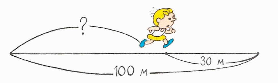 Спортсмену нужно пробежать 100 м. Сколько метров пробежал спортсмен, если до финиша осталось бежать 30 м?