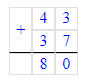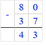 11) 80 – 37 = 43;